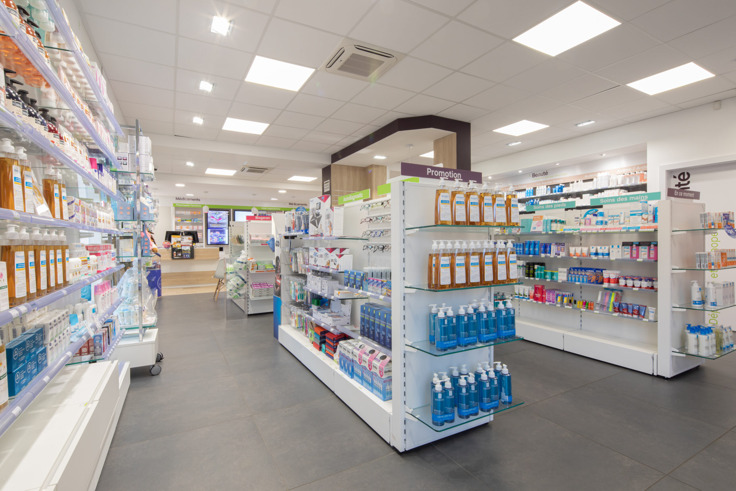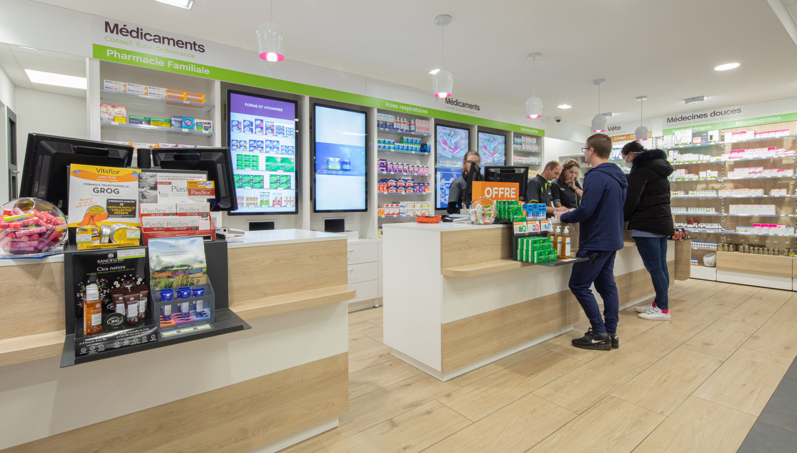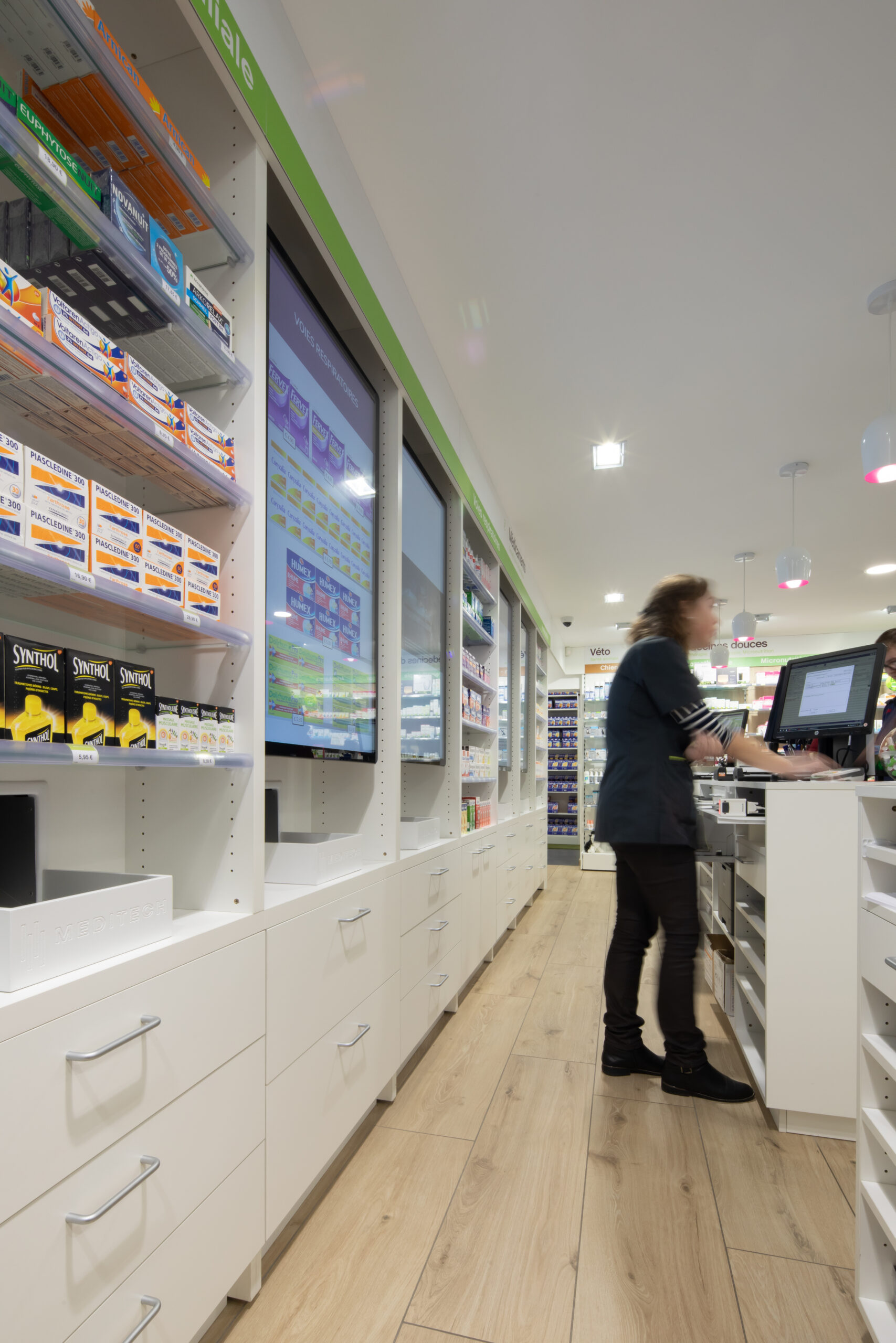 La farmacia Du Château si distingue per la sua innovativa digitalizzazione, un elemento che rivoluziona l’esperienza del cliente. I monitor disposti dietro al retrobanco offrono comunicazioni chiare e versatili, rendendo informazioni utili sempre accessibili. Questa interattività non si ferma alla soglia della farmacia: grazie a contenuti informativi e promozioni, si crea un legame duraturo con il cliente, mantenendo viva la comunicazione anche quando torna a casa. In questo modo, la farmacia non è solo un punto di vendita, ma un partner nel benessere, sempre presente e attento alle esigenze di ciascuno.